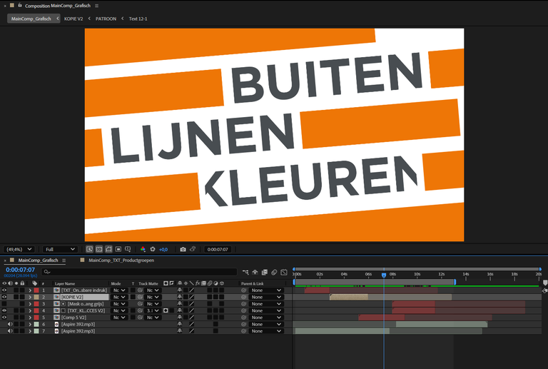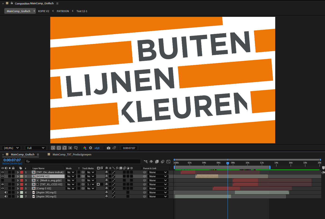 Mijn tweede opdracht liep van dinsdag tot en met vrijdag en bestond uit het maken van een VOX-style video voor “Remember Beatrix”. Dit is een video uit een reeks over de periode van NAC Breda in de Beatrixstraat. Voor deze opdracht werd ik behoorlijk in het diepe gegooid, omdat ik halverwege het project instroomde. Ik kreeg een After Effects-bestand dat al deels was opgezet, samen met ongeveer 14 GB aan beeldmateriaal, terwijl ik nauwelijks kennis had van NAC Breda. Dit maakte de opdracht uitdagend, maar het voelde ook als een test om te laten zien wat ik al beheers binnen After Effects. Aan het einde van de week kwamen Roel en Koen kijken naar wat ik in deze vier dagen had bedacht en uitgewerkt. Ze bekeken de video, gaven feedback en deelden daarnaast waardevolle tips over After Effects, zoals het werken met nulls en comps, en over hun workflow en mappenstructuur.