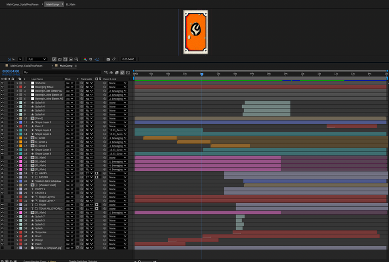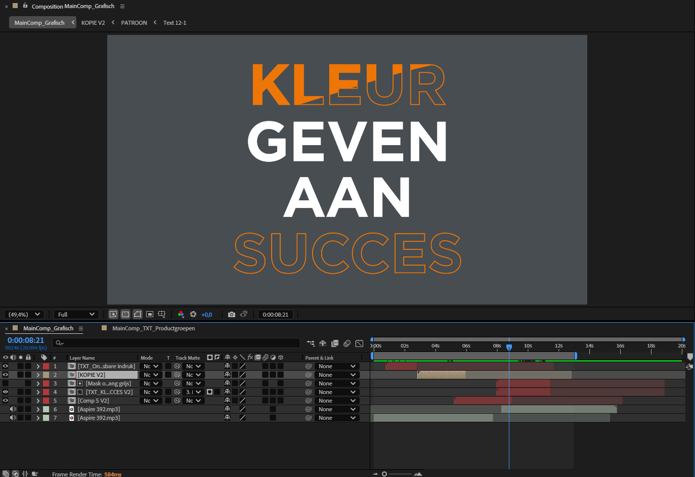 Dinsdag heb ik verder gewerkt aan de illustraties en woensdag mocht ik beginnen met het animeren. Ik heb een After Effects bestand klaargemaakt met een duidelijke mappenstructuur en ben gestart met het maken van eenvoudige animaties om een eerste grove opzet te creëren.