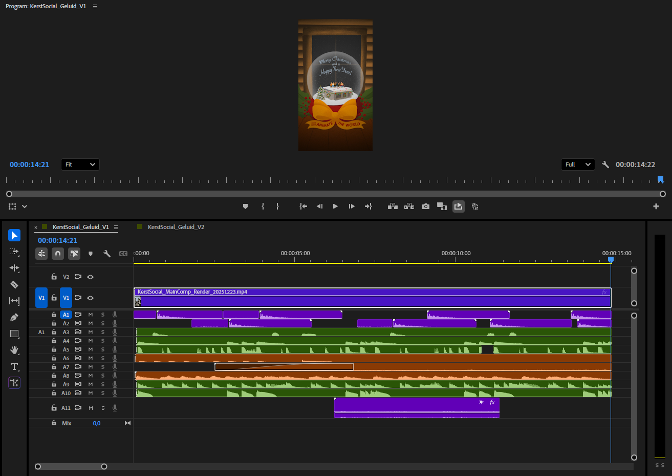 Dinsdag was de deadline voor de kerstpost. Die ochtend heb ik me daarom gefocust op het geluid onder de video. Ik heb twee versies gemaakt die ik allebei goed bij ATW vond passen en heb mijn collega’s laten kiezen. Ze waren er erg enthousiast over.